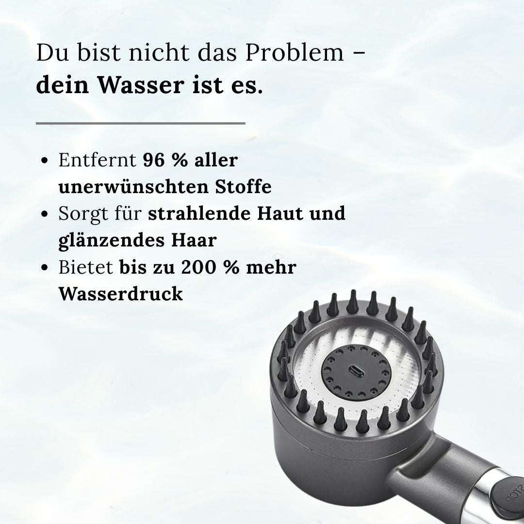 Der leistungsstarke Filter reduziert bis zu 96 % von Kalk, Rost und anderen feinen Verunreinigungen. So genießt du deutlich weicheres Wasser, das sanfter zu Haut und Haar ist.